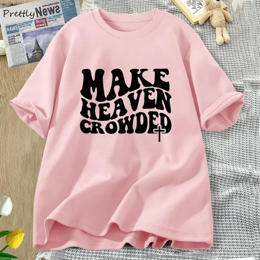 Make Heaven Crowded Tshirt Women Christian Easter Jesus T-shirt Cotton Short Sleeve Oversized Graphic Tees Hippie Clothes Tops