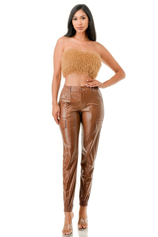 Off Shoulder Cropped Top And Ruched Leggings Sets