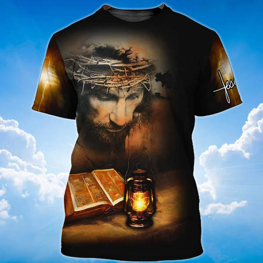 3D Jesus Printing T Shirt For Men Christianity Cross Pattern Short Sleeve Tops Casual O-neck Oversized T-shirts Vintage Clothes