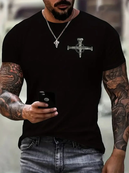 Cross & Christian Slogan Pattern Print Men's Comfy T-shirt, Graphic Tee Men's Summer Clothes, Men's Clothing