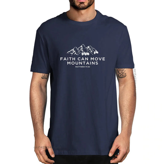 Faith Can Move Mountains Matthew 17:20 Christian Shirt Men's 100% Cotton Designer T-Shirts Unisex Humor Streetwear Women Tee