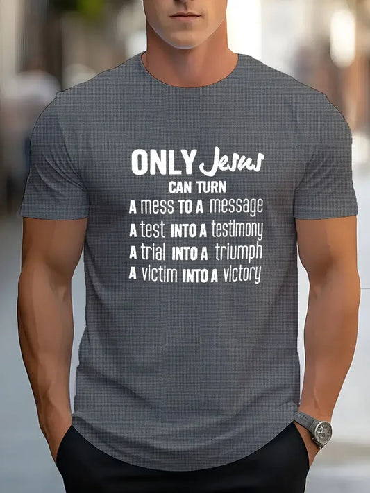 'Only Jesus Can Do ...' Print T Shirt, Tees For Men, Casual Short Sleeve 3D T shirt For Summer Spring Fall, Tops As Gifts