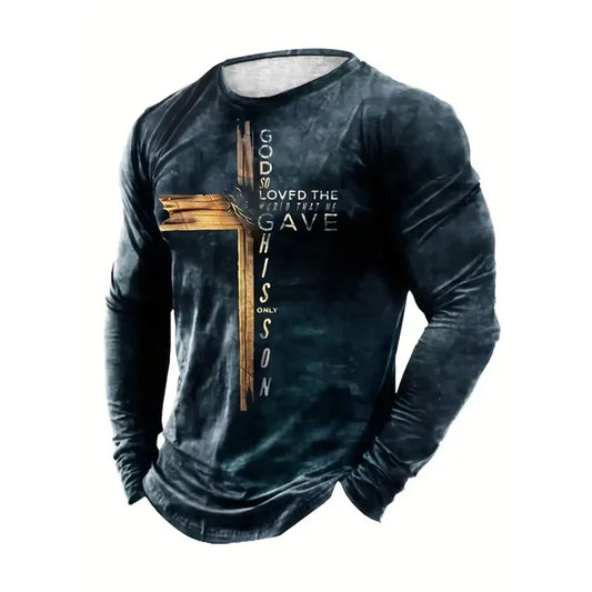 Funny Cross Pattern Men TShirt Fashion Cotton Long Sleeve T-shirt 3D Print Loose Top Fall Casual O-neck Pullover Vintage Clothes